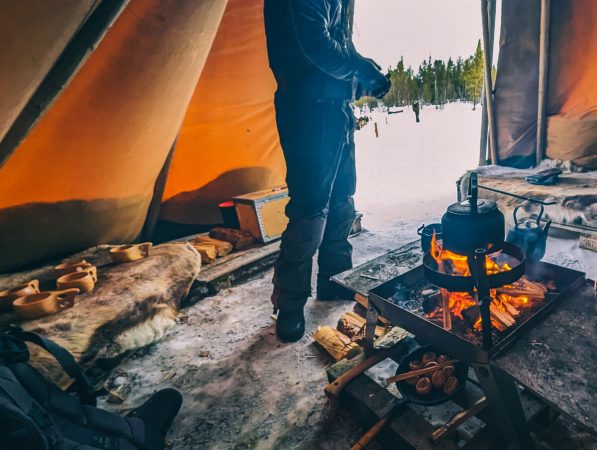 - faire une pause fika dans une tente chauffée au feu de bois, pour déguster des gâteaux et prendre une boisson chaude.