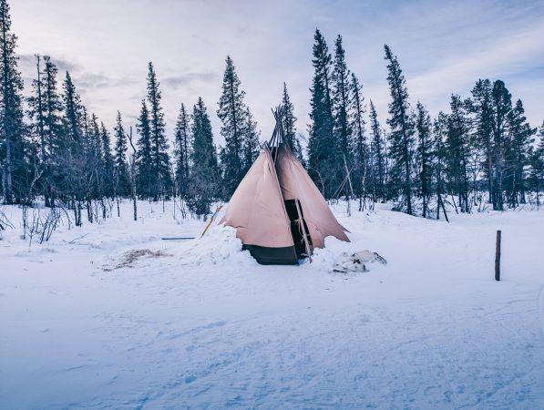 A mi-parcours, on fait un arrêt pour prendre une boisson chaude dans une tipi, une sorte de grande tente avec une cheminée en son centre.
