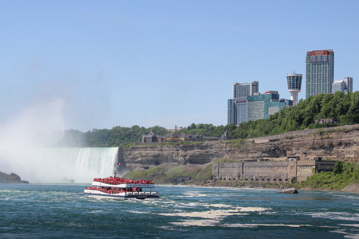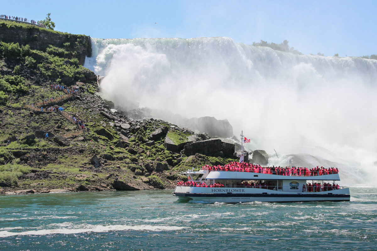 L’image est classique : un bateau rempli de touristes vêtus d’un protège-pluie bleu ou rouge, se dirigeant tout droit vers les Horseshoe Falls…